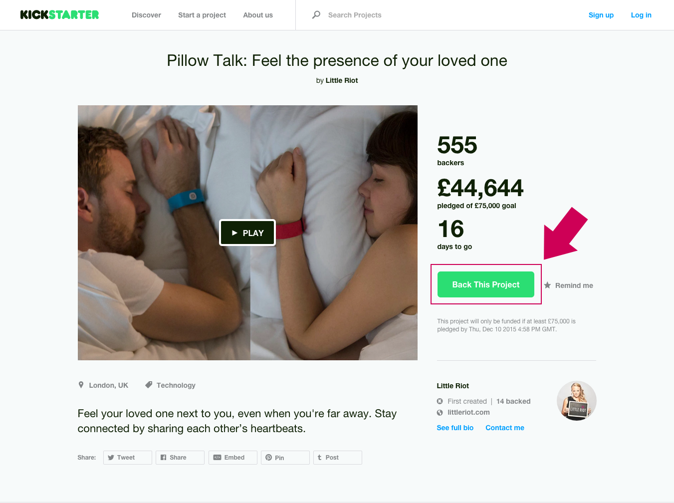 The most popular option is "Pillow Talk Duo" which has 2 wristbands and two speakers. There are more options for you to choose from and even if you don't want to buy a Pillow Talk just now you can still help bring the project to life by backing us with a small amount.